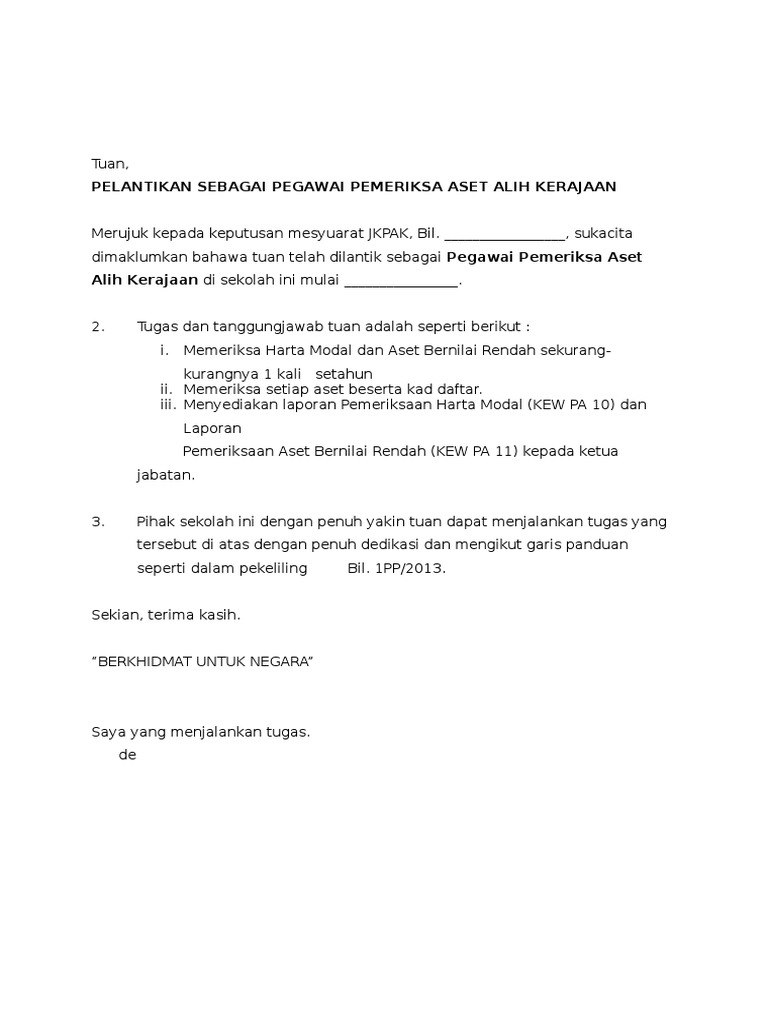 Related : Sistem Lantikan Pegawai Aset : Format surat pelantikan pegawai penerima..