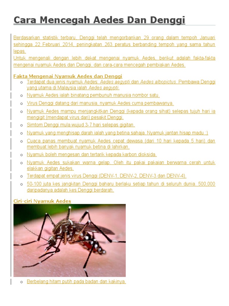 Memandangkan bertambahnya penyakit ini di kawasan bandar. Ulasan nyamuk aedes ulasan tema bahan rangsangan : Ini menyebabkan ada air yang bertakung dan boleh menjadi tempat pembiakan nyamuk aedes. Bagi kawasan luar bangunan, pembiakan nyamuk aedes boleh terjadi di kolam air seperti lopak. Ia membiak dalam takungan air jernih dan memerlukan masa seminggu untuk menjadi nyamuk dewasa. Sebegini menjadi habitt pembiakan nyamuk aedes. Dalam kajian yang dilakukan di new zealand mendapati jenis bekas buatan manusia merupakan jenis bekas yang mempunyai larva. Nyamuk aedes rangka ulasan • tema : Keberkesanan penggunaan nyamuk gajah dalam membendung nyamuk aedes dan penyebaran wabak denggi sudah lama menjadi perdebatan. Berpotensi sebagai tempat pembiakan nyamuk aedes. Jika di dapati ada penghuni rumah yang sudah mula menghidap denggi, pastikan mereka tidak digigit nyamuk atau penghuni lain di dalam rumah. Jentik nyamuk jangan dianggap sepele! Lima mangsa diserang anjing yang disyaki positif rabies 3.